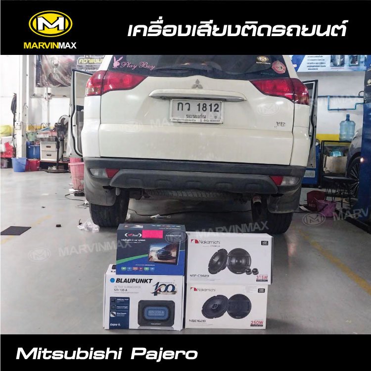 Mitsubishi Pajero ติดตั้ง จอ Hinet R9035 เบสบ็อค Blaupunkt รุ่น GTR135A ลำโพง Nakamichi Nsf-Cs623 ลำโพง Nakamichi NSE1628