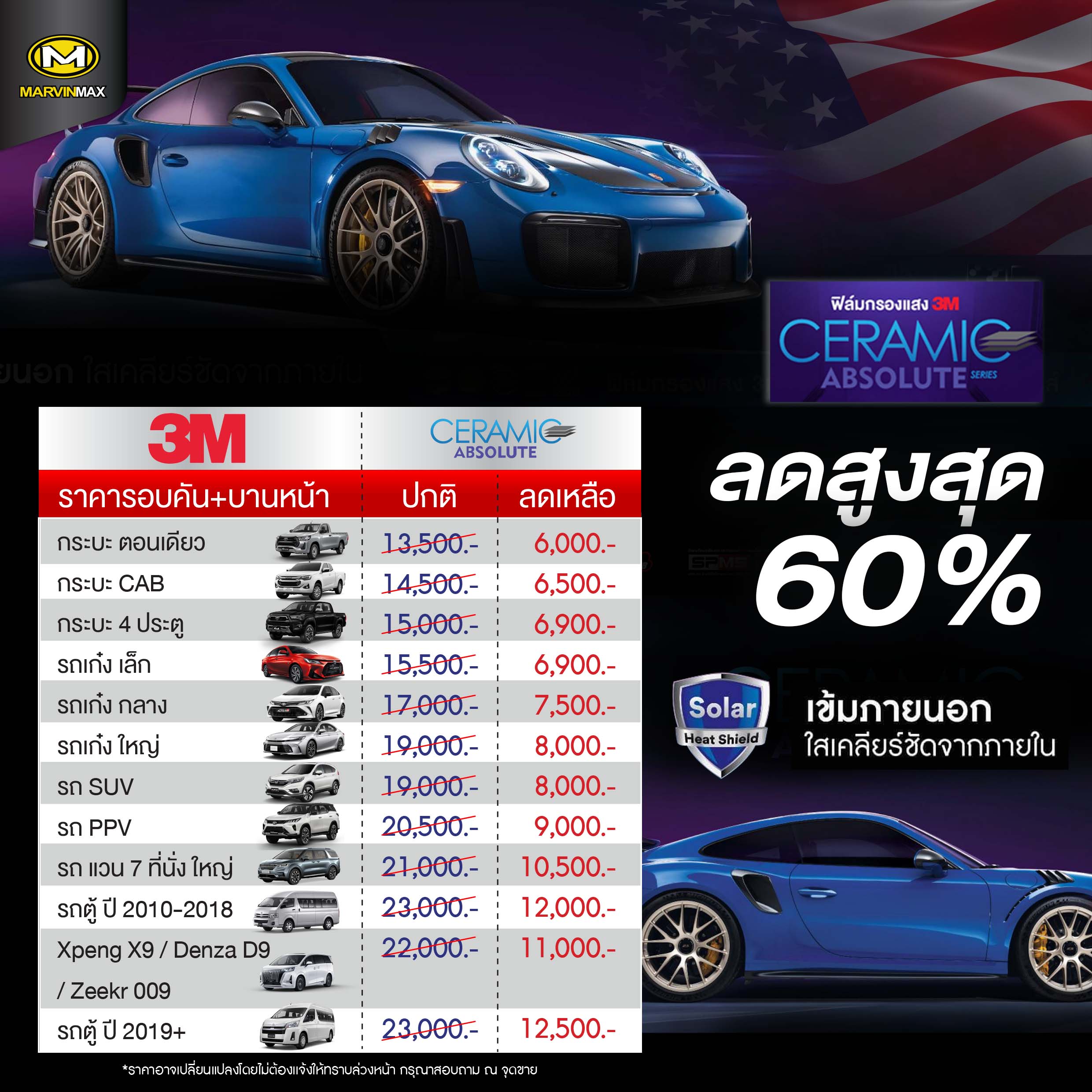 ฟิล์มเซรามิค 3M Absolute Series ดีไหม? จากการที่ดูเนื้อฟิล์มและประสิทธิภาพการป้องกันความร้อนแล้ว ต้องบอกได้เลยว่า 3M Ceramic Absolute series เป็นฟิล์มเซรามิคของ 3M ที่คุ้มค่ามากๆ ราคาติดตั้งประมาณคันละ 6,500-11,000 บาท ถูกกว่ารุ่น Top มากกว่า 20-50% แล้วยังสามารถลดความร้อนรวมได้สูงสุด 64% (ใกล้เคียงรุ่น Top) ป้องกันรังสีความร้อนหรือรังสีอินฟราเรด(IRR) ได้ถึง 81% กันรังสีUV 99%