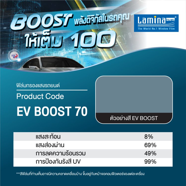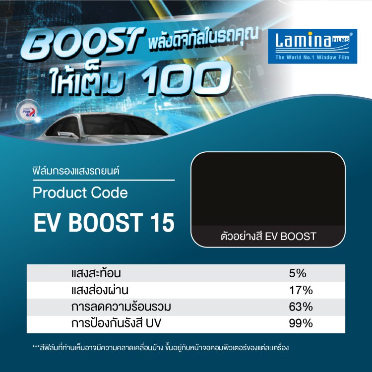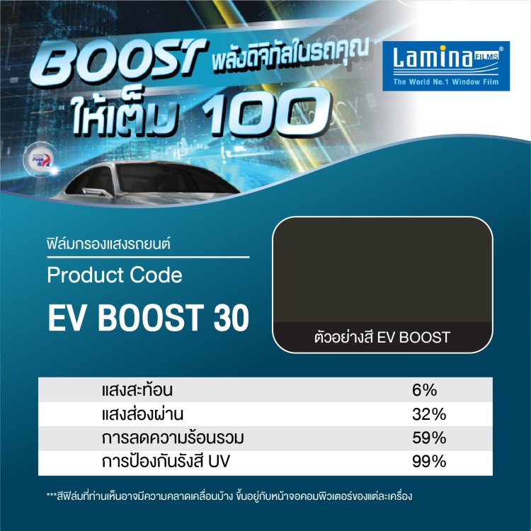 ได้เวลาสตาร์ท...ก้าวข้ามเทคโนโลยีฟิล์มกรองแสงติดรถยนต์ 4G แบบเดิมๆ สู่ฟิล์มติดรถยนต์เจนเนอร์เรชั่นใหม่ล่าสุด ด้วยนวัตกรรม Lamina DigitalBoost® ครั้งแรกของโลกที่ Lamina จับมือ CPFilms Inc. by Eastman Chemical Group, USA ร่วมวิจัย คิดค้น และรังสรรค์ฟิล์มกรองแสงชนิดใหม่เพื่อยานยนต์ HYBRID / EV & SMART CAR ยุคใหม่ ด้วยเนื้อฟิล์มที่มีคุณสมบัติพิเศษ ช่วยให้การควบคุมระบบดิจิทัลอัจฉริยะต่างๆภายในรถทำงานได้เต็มประสิทธิภาพ ตอบสนองไลฟ์สไตล์กระแสยานยนต์อนาคตโดยเฉพาะ