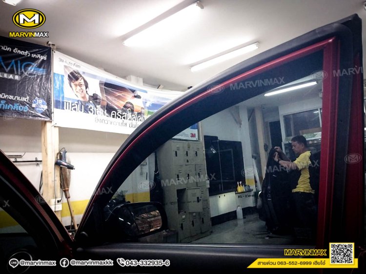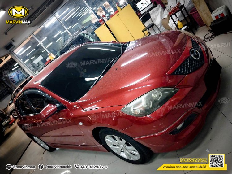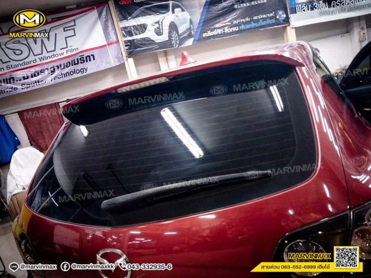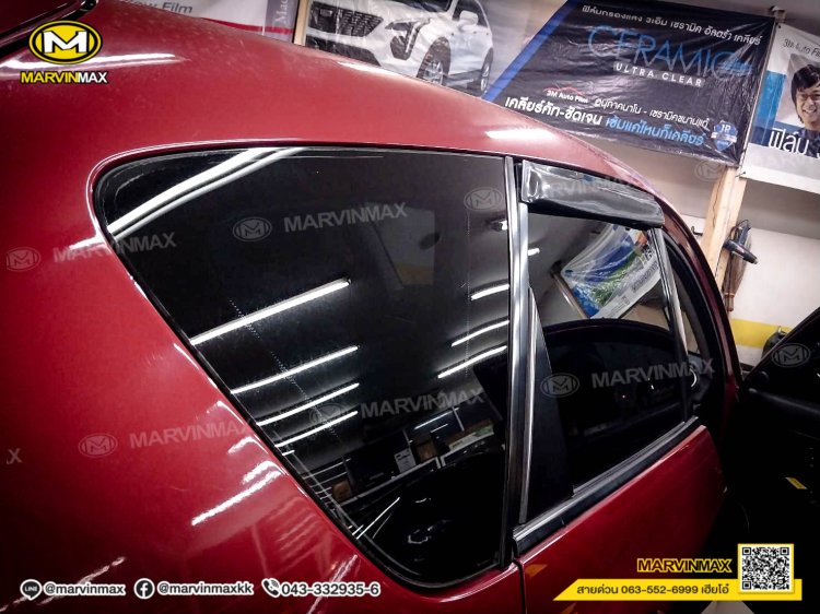 ฟิล์มกรองแสง HI-KOOL CERAMIC BLACK NIGHT บานหน้า cm35 รอบคัน cm20 _Mazda 3