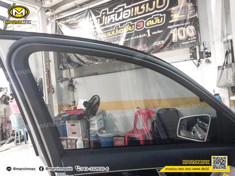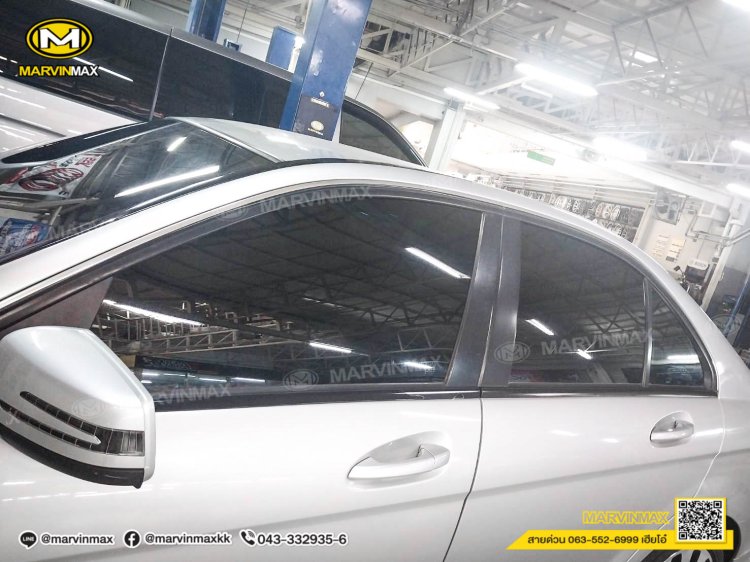 ฟิล์มกรองแสง HI-KOOL CERAMIC BLACK NIGHT บานหน้า cm35 รอบคัน cm20 _Mercedes Benz C200