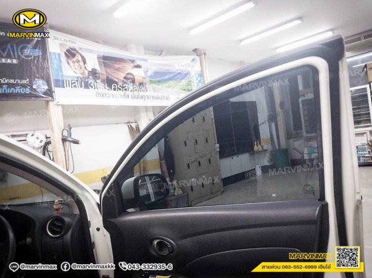 ฟิล์มกรองแสง Hi Kool รุ่น Black night บานหน้า cm 35 คู่หน้า cm20 คู่หลัง cm05 บ้านหลัง cm20 _Nissan Almera
