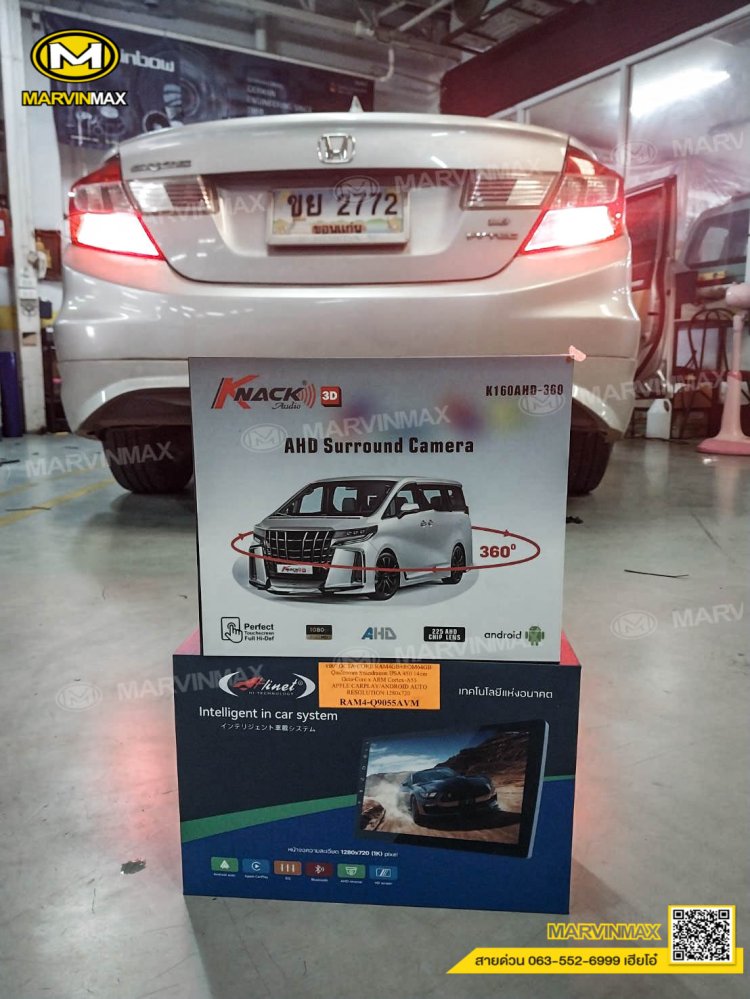 Honda Civic ติดตั้งจอ Hinet Q9055AVM + กล้องรอบคัน
