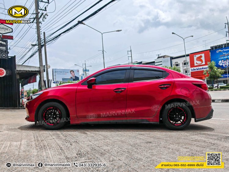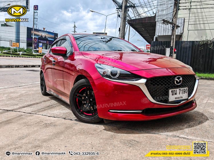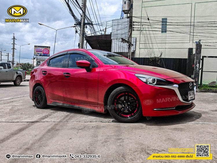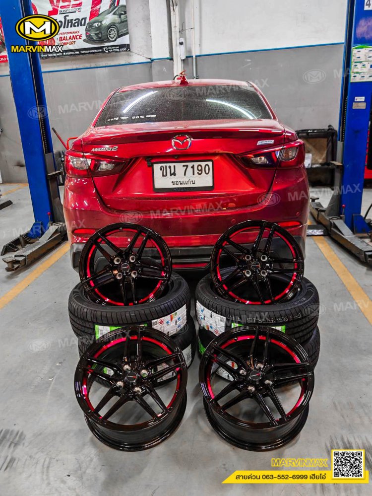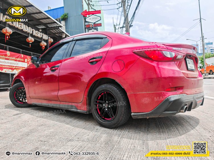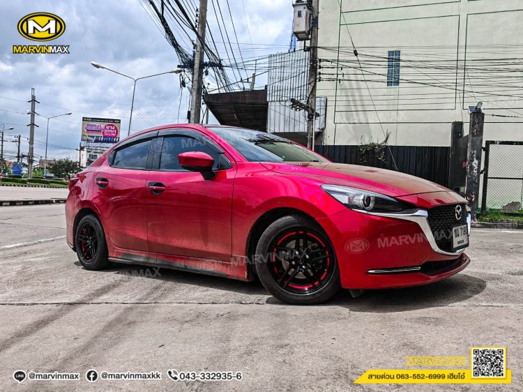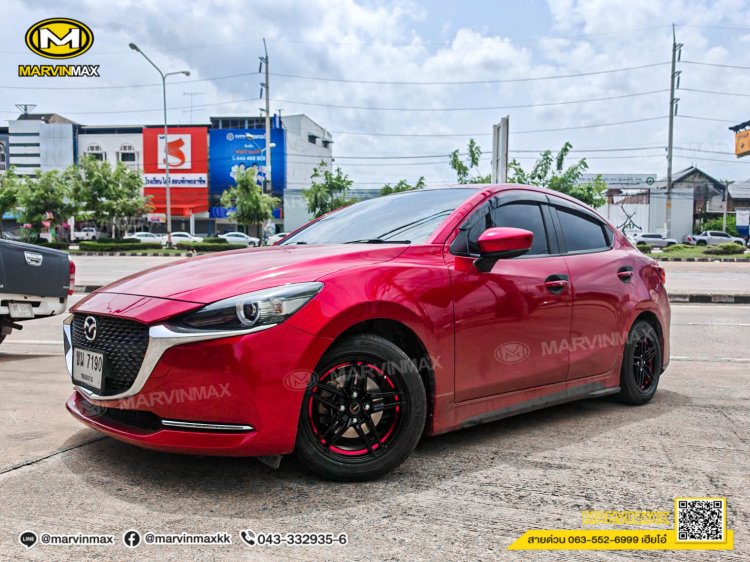 Mazda 2 ใส่ล้อแม็กซ์ INFERNO JK5039 Black Inner Red ขอบ 15" ยางใช้ ขนาดเดิม 185/60R15