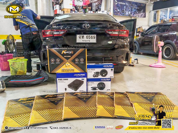 Toyota Yaris ativ ติดตั้งเครื่องเสียงรถยนต์ ลำโพงแยกชิ้น Alpine SPJ-161CS ลำโพงแกนร่วม Alpine SPJ-161C2 ซับ Alpine PWE-S800 แดมป์ Knack