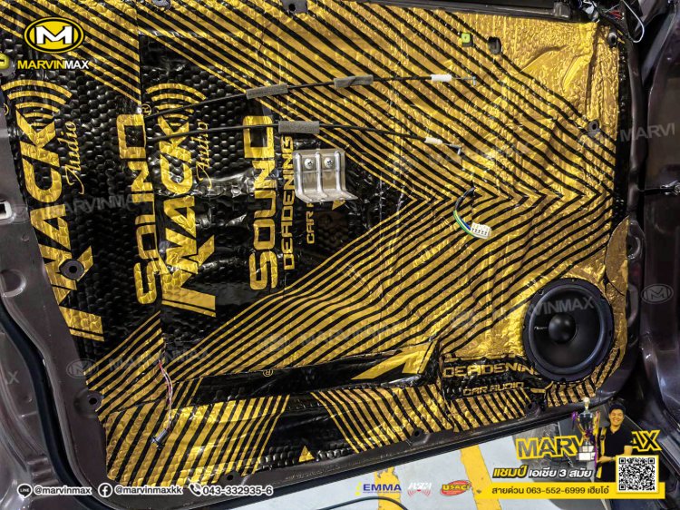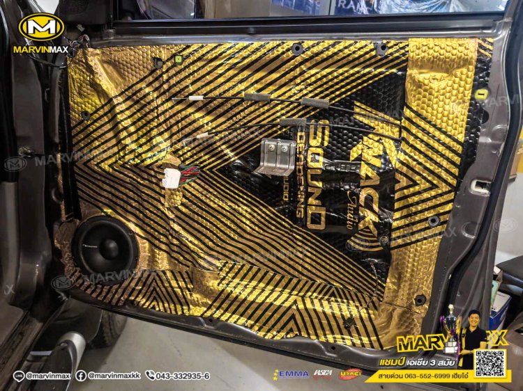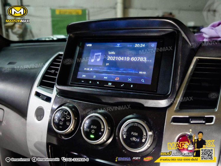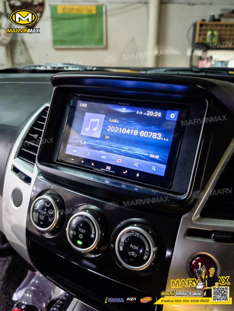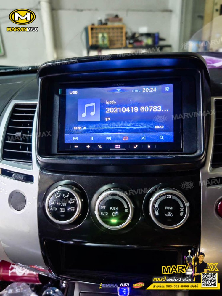 Mitsubishi pajero ติดตั้ง ลำโพงแยกชิ้น Nakamichi 6" 4-way nse-cs1628 แผ่นแดมป์ Knack จอ 7 นิ้ว Alpine iLX-W670E กล้องบันทึกเหตุการณ์ หน้า-หลัง Scene DG-401 กล้องมองถอย Decar CMD-315