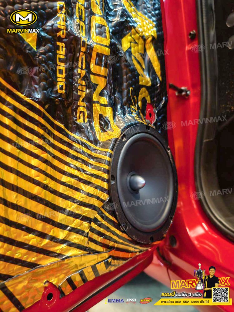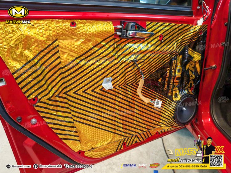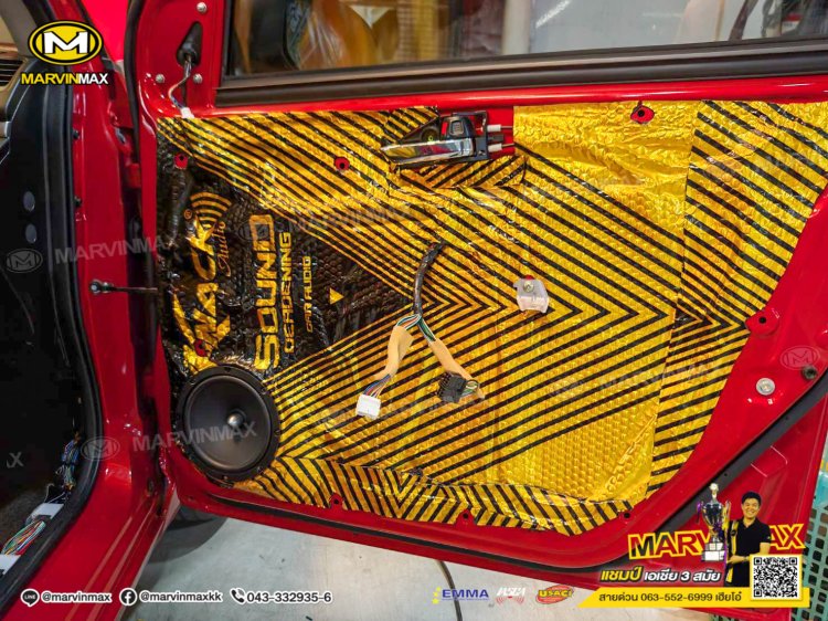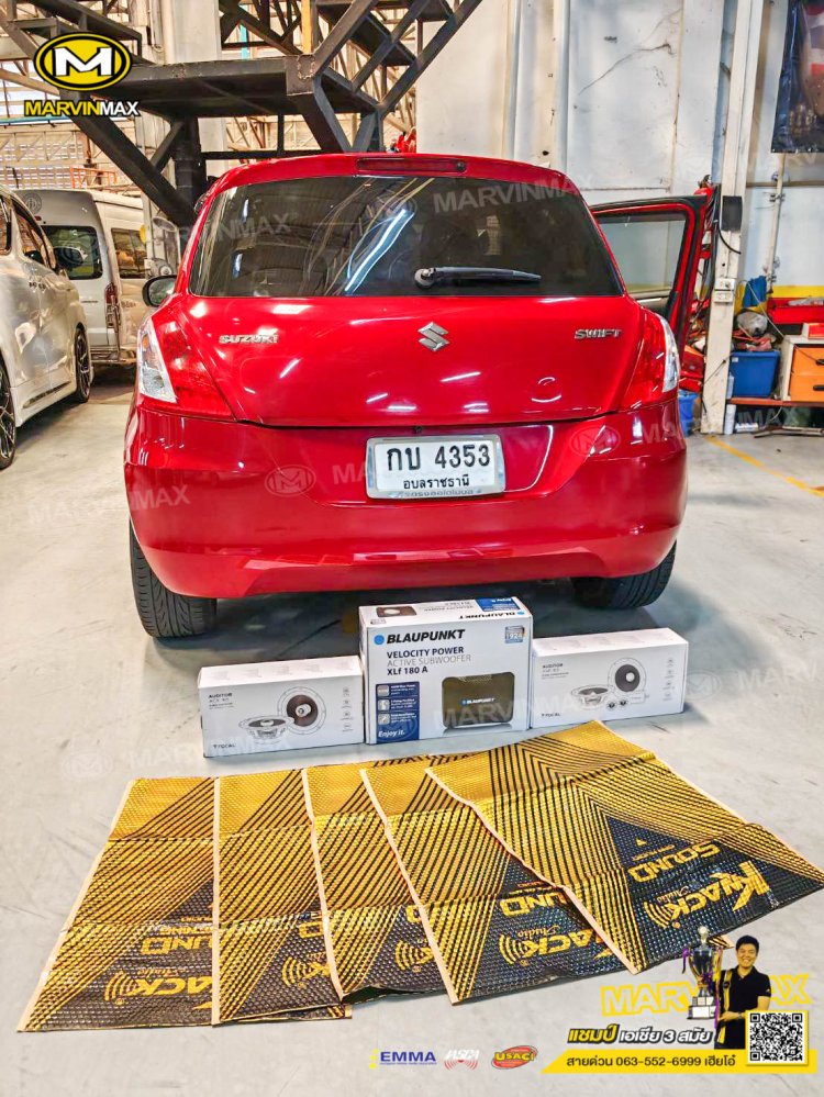 Suzuki Swift ติดตั้ง ลำโพงแยกชิ้น Focal Ase 165 ลำโพงแกนร่วม Focal Acx 165 ซับบ็อกซ์ Blaupunkt Xlf 180 A แผ่นแดมป์ Knack