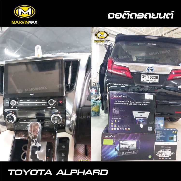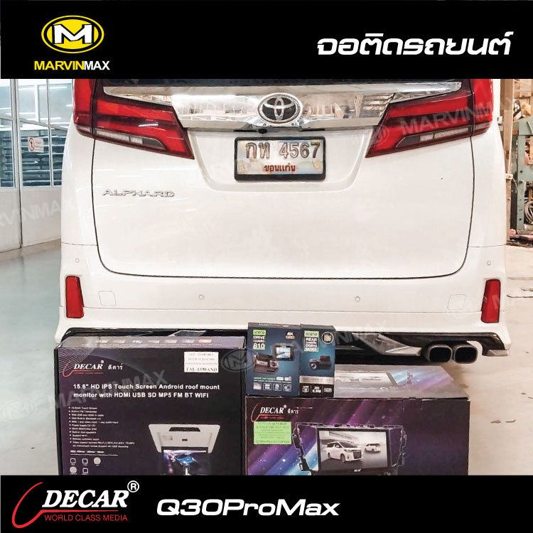Toyota Alphard ติดตั้งจอแอนดรอยด์ Decar Q30ProMax (AVM360) จอเพดาน Decar Tal-1590and 15.6 นิ้ว กล้องหน้า-หลัง Scene Dg810