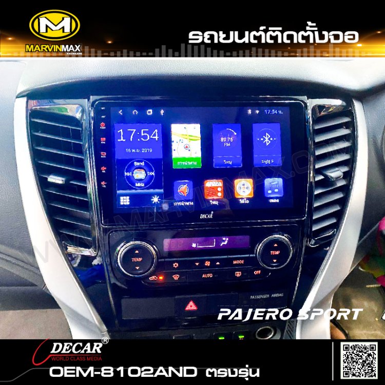 รถยนต์ติดตั้งจอ DECAR OEM-8102AND ตรงรุ่น _Mitsubishi Pajero Sport 2018