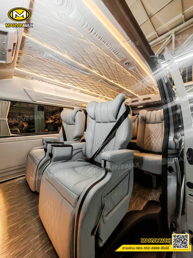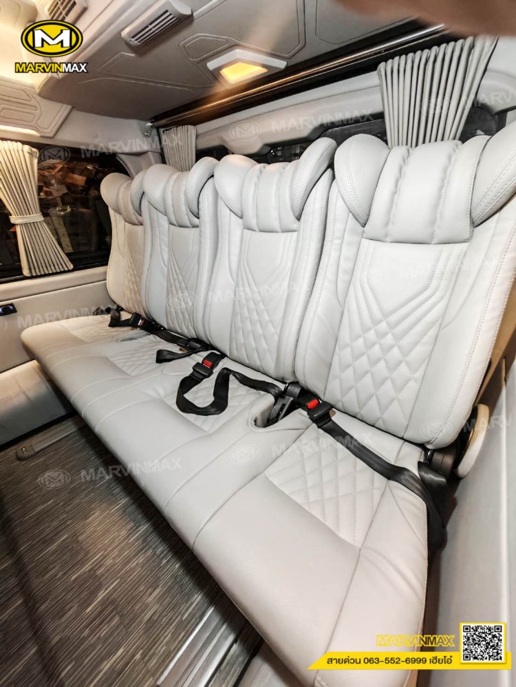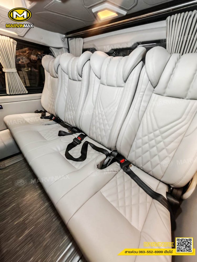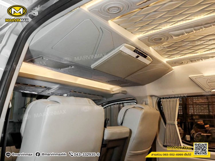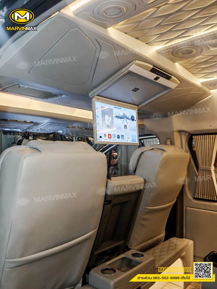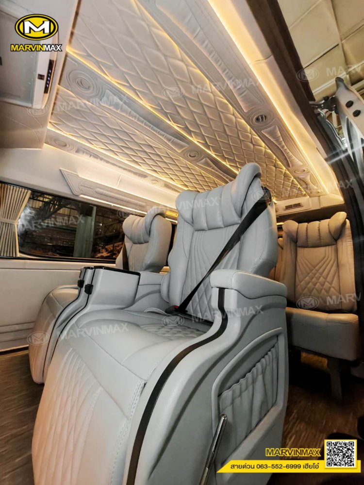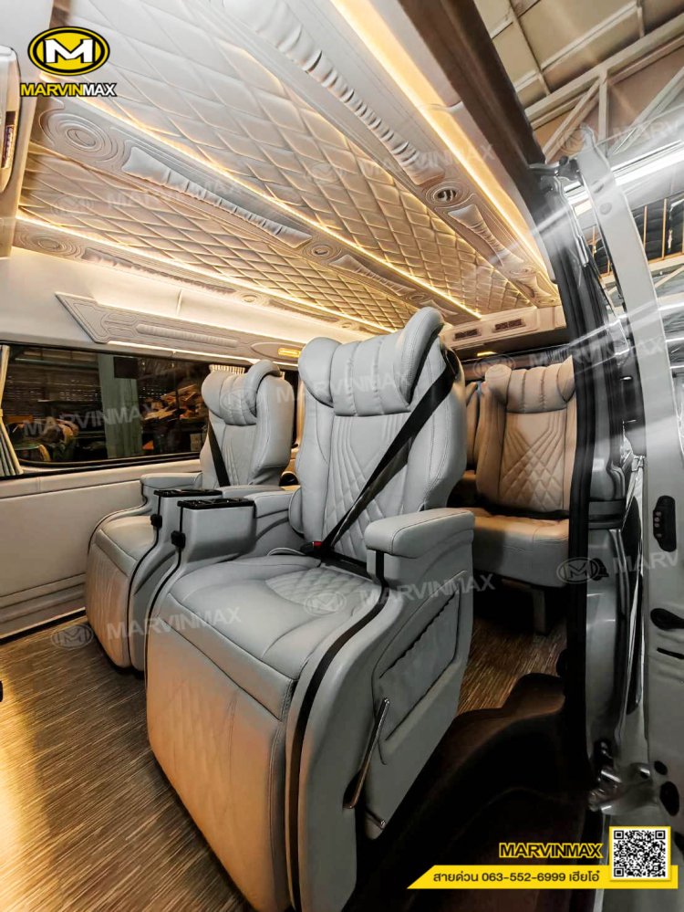 ตกแต่งรถตู้ VIP หลังคา Boeing3 ระบบแอร์ไมโครบัส กรุภายในรอบคัน ปูพื้นลามิเนตอย่างดี เบาะ Luxury King Grand VIP 9 ที่นั่ง หุ้มเบาะหน้าแต่งทรง VIP ผ้าม่านคู่อลูมิเนียม คอนโซล Modern อเนกประสงค์ พร้อมที่วางแก้ว & ช่องเสียบ USB ชุดเครื่องเสียง Android 10 นิ้ว จอเพดาน 17 นิ้ว ล้อแม็ก YACHILODA ขอบ 16”