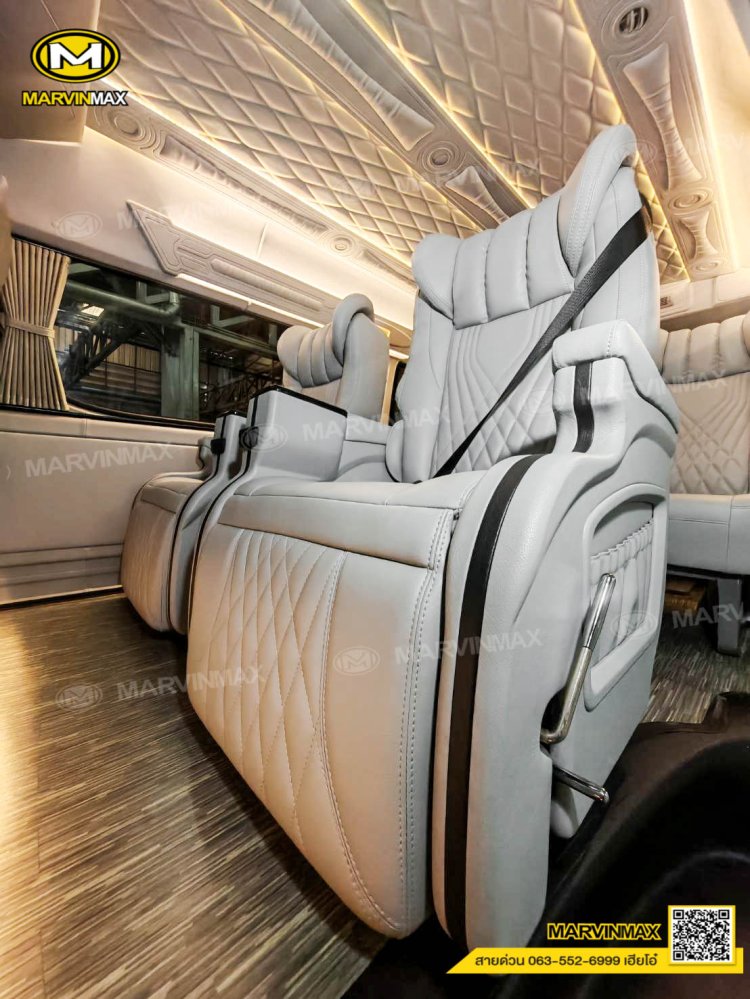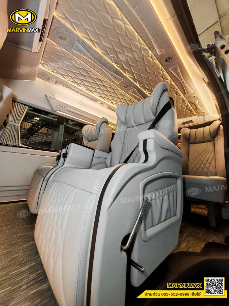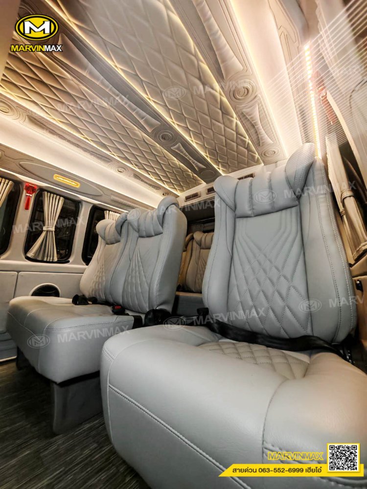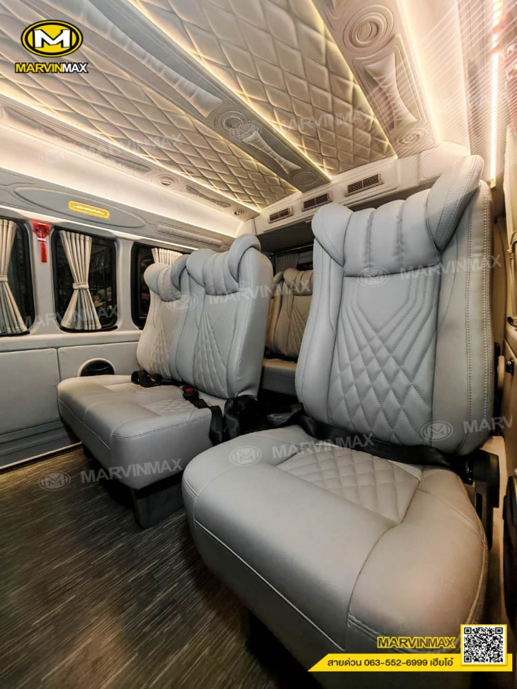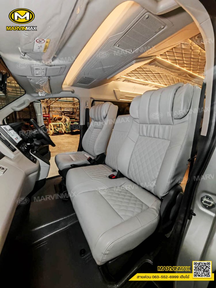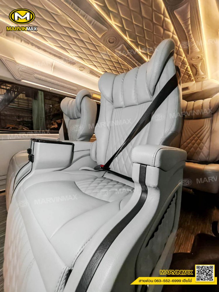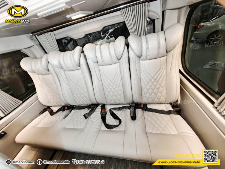 ตกแต่งรถตู้ VIP หลังคา Boeing3 ระบบแอร์ไมโครบัส กรุภายในรอบคัน ปูพื้นลามิเนตอย่างดี เบาะ Luxury King Grand VIP 9 ที่นั่ง หุ้มเบาะหน้าแต่งทรง VIP ผ้าม่านคู่อลูมิเนียม คอนโซล Modern อเนกประสงค์ พร้อมที่วางแก้ว & ช่องเสียบ USB ชุดเครื่องเสียง Android 10 นิ้ว จอเพดาน 17 นิ้ว ล้อแม็ก YACHILODA ขอบ 16”