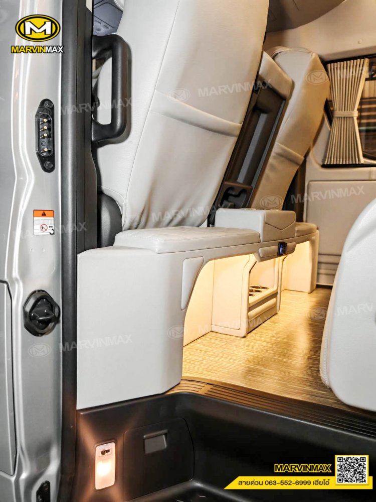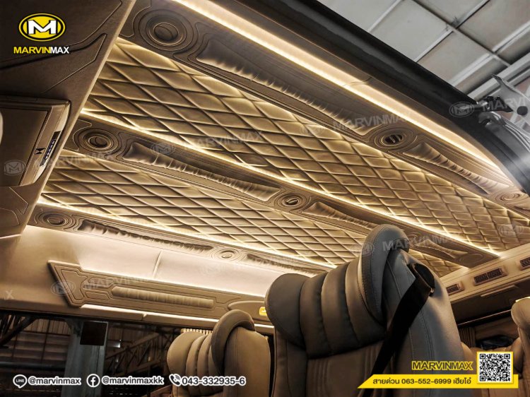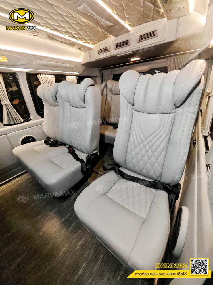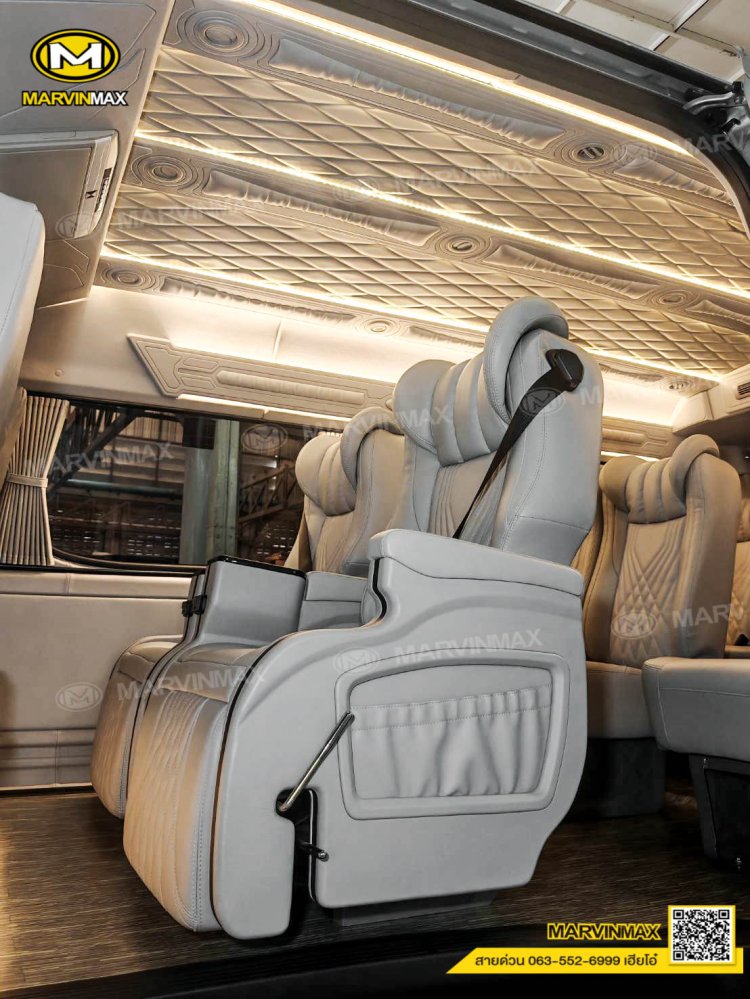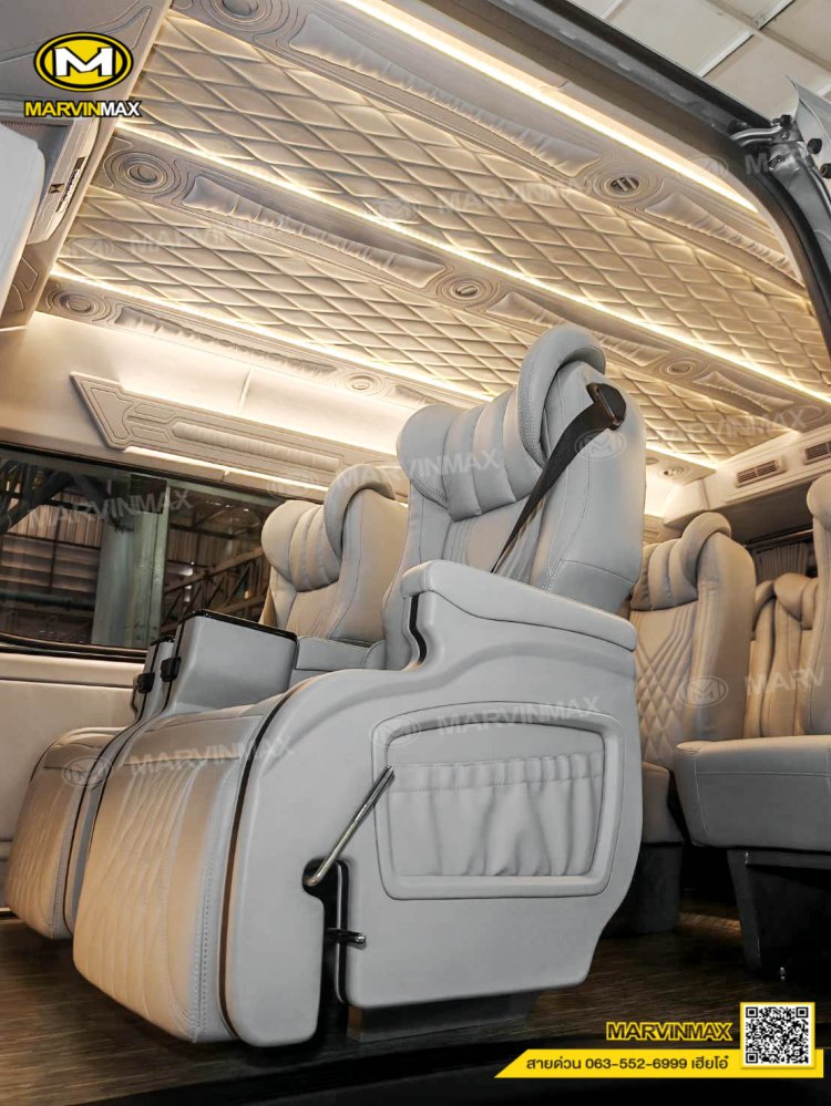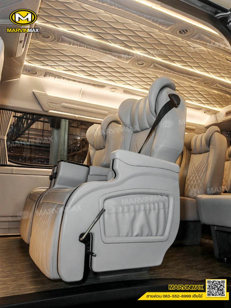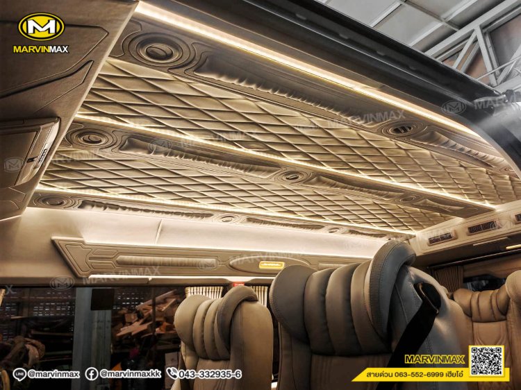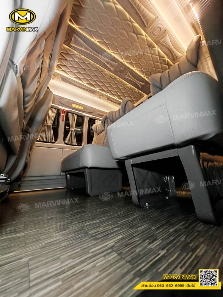 ตกแต่งรถตู้ VIP หลังคา Boeing3 ระบบแอร์ไมโครบัส กรุภายในรอบคัน ปูพื้นลามิเนตอย่างดี เบาะ Luxury King Grand VIP 9 ที่นั่ง หุ้มเบาะหน้าแต่งทรง VIP ผ้าม่านคู่อลูมิเนียม คอนโซล Modern อเนกประสงค์ พร้อมที่วางแก้ว & ช่องเสียบ USB ชุดเครื่องเสียง Android 10 นิ้ว จอเพดาน 17 นิ้ว ล้อแม็ก YACHILODA ขอบ 16”