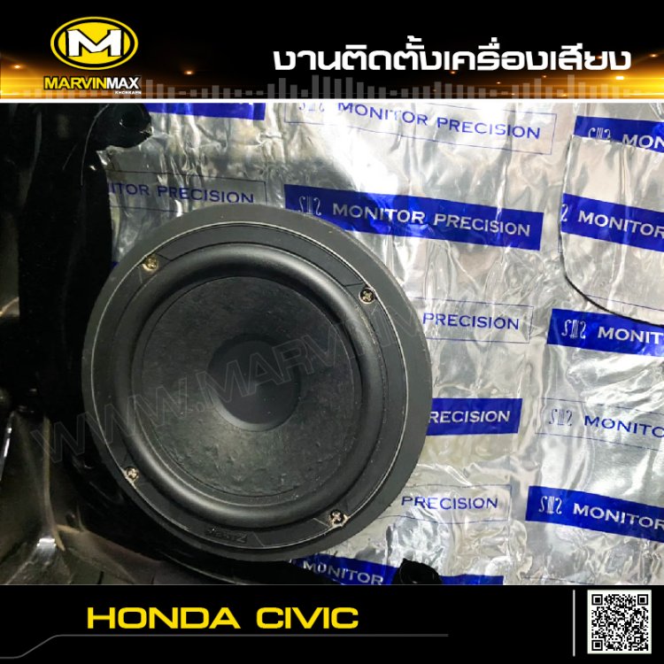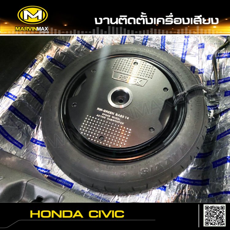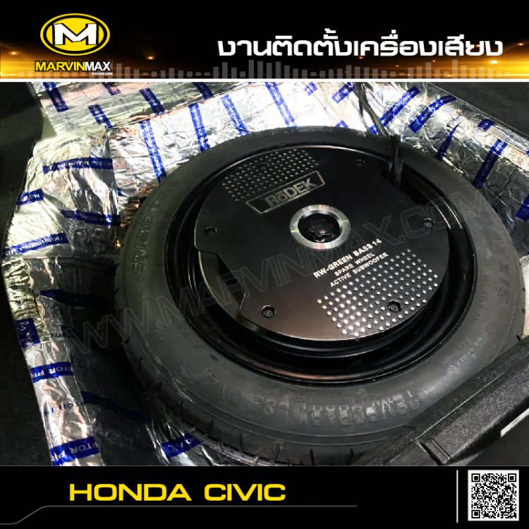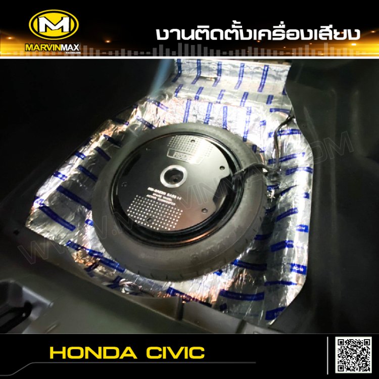 เครื่องเสียง HONDA CIVIC มันส์ไปกับ Sub ยางอะไหล่ RODEX 10" ,ลำโพงแยกชิ้น HERTZ ESK 165.5L ,Damping