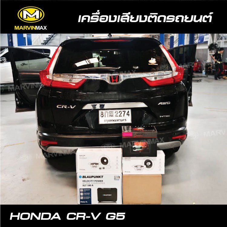 HONDA CR-V G5 อัปเกรดใหม่ทั้งระบบ ติดตั้งลำโพง คู่หน้า Focal ASE 165 (แยกชิ้น) คู่หลัง Focal ACX 165 (แกนร่วม) Subwoofer Box BLAUPUNKT XLF 180A แดมป์ Mercury จอ Android Decar 10.2” รุ่น OEM-A10 Small