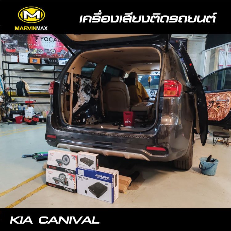 เครื่องเสียงติดรถยนต์ ลำโพง Focal 165AS ลำโพง Focal 165AC Sub Box Alpine PWE-S800 DSP Nakamichi DNS4085 แผ่น Damp _Kia Canival