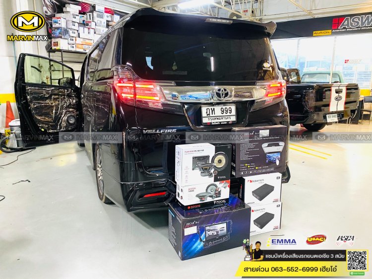 ลำโพงแยกชิ้นหน้า FOCAL PS 165V1 6 ลำโพงแยกชิ้นหลัง FOCAL FLAX EVO 6" (การใช้งานเน้นด้านหลังเหมาะสำหรับผู้บริหาร) SUB BOX NAKAMICHI 8" 2 ดอก จอเพดาน ANDROID 15" ภาพคมชัดระดับ HD _TOYOTA VELLFIRE