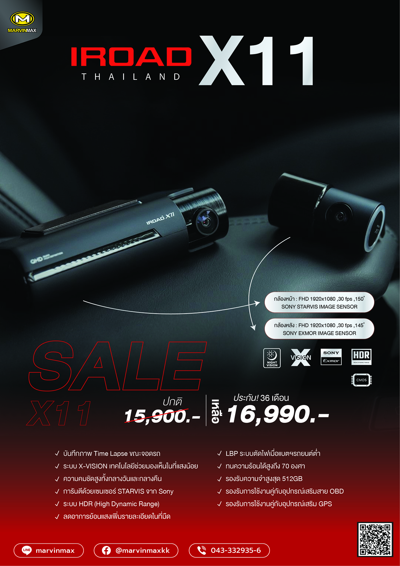 เซ็นเซอร์ SONY STARVIS ที่ใช้กับกล้องด้านหลัง IROAD X11 ได้ปรับปรุงคุณภาพของภาพที่ปรับปรุงให้ดีขึ้น และไฟส่องสว่างในเวลากลางคืนมีสีที่สดใสกว่าในภาพ QHD ให้ภาพในเวลากลางคืนที่ยอดเยี่ยม