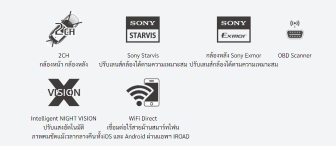 WiFi : เชื่อมต่อไร้สายผ่านสมาร์ทโฟน ทั้ง iOS และ Android ผ่านแอพฯ IROAD