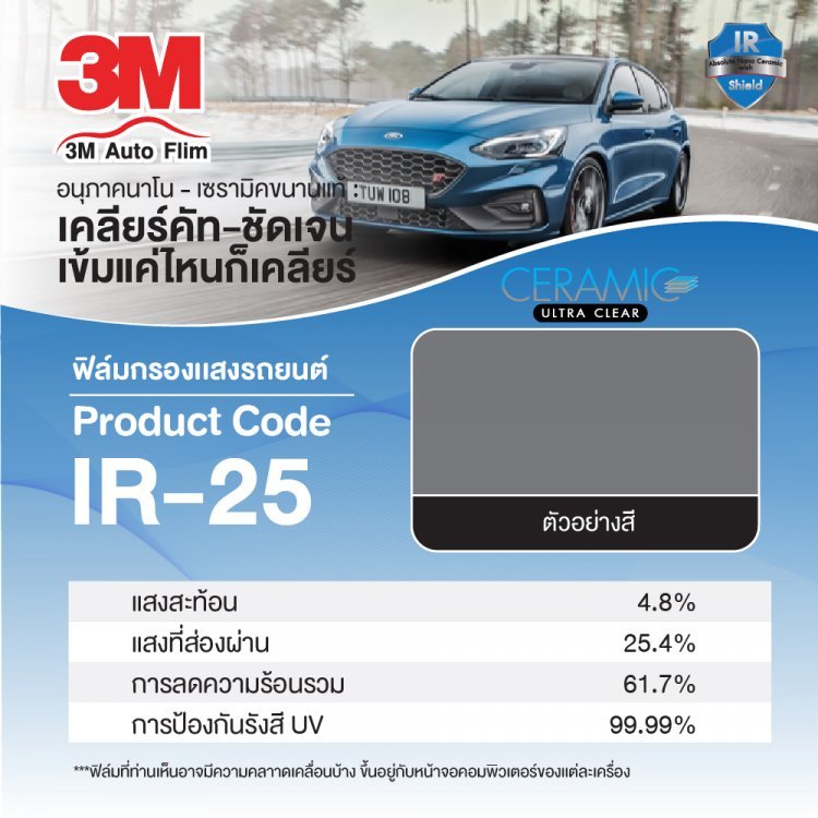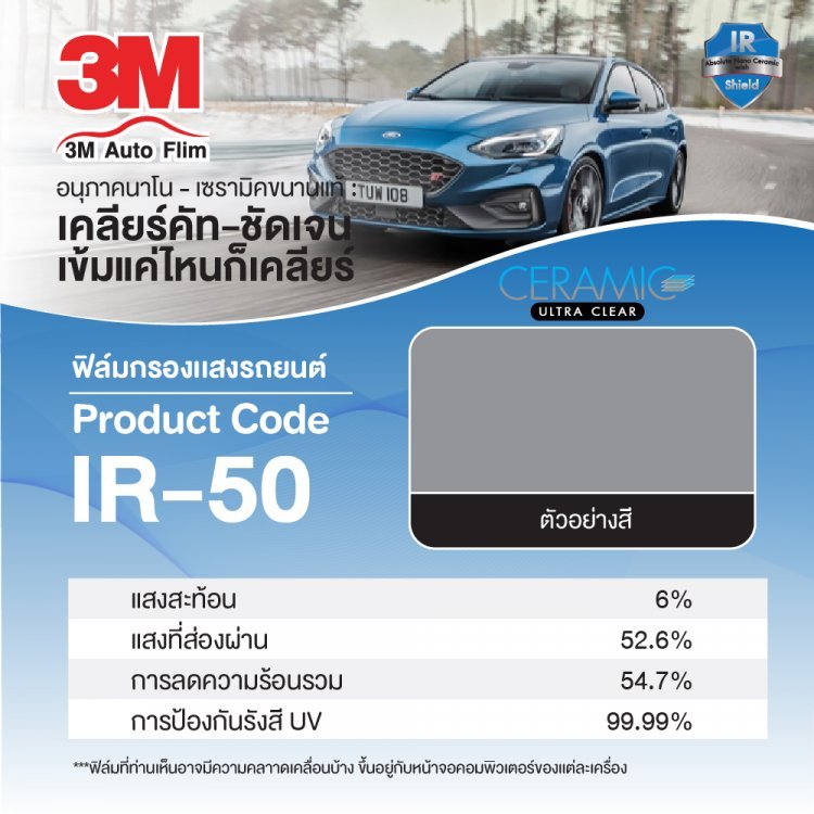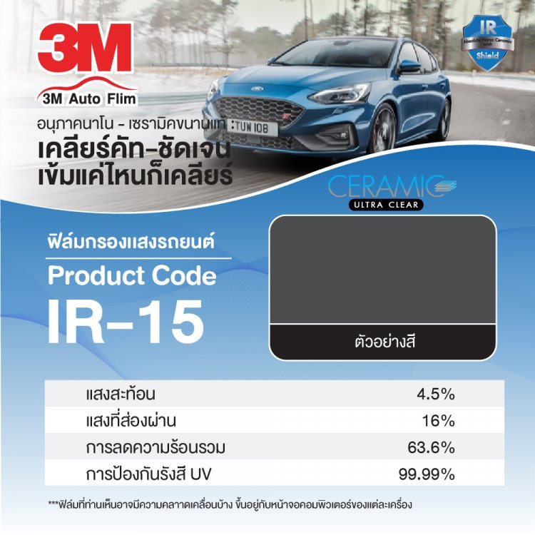 ‍Cut IR : ตัดรังสีอินฟราเรตได้สูงสุดถึง 95% เพิ่มการเคลือบชั้นป้องกันรังสีอินฟราเรด ตัวการสร้างความร้อนหลักที่มีกับแสงอาทิตย์ ทำให้คุณรู้สึกสบายภายในห้องโดยสาร