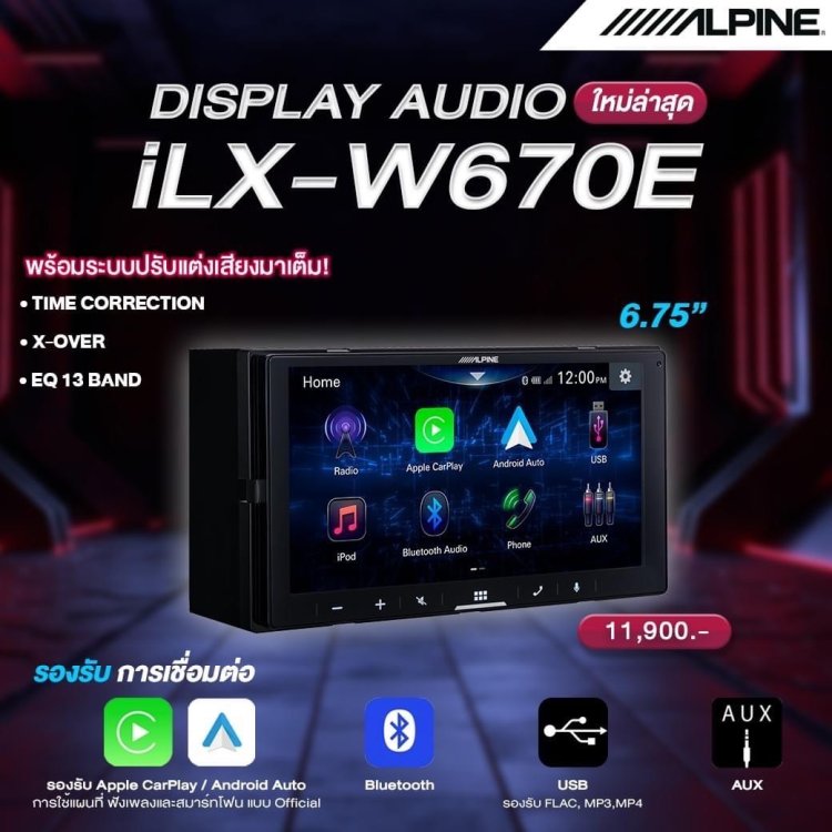 จอ Display Audio รุ่นใหม่ล่าสุด ยกระดับความบันเทิงในรถของคุณด้วยหน้าจอสัมผัสขนาด 6.75 นิ้ว รองรับ Apple CarPlay / Android Auto พร้อมระบบปรับแต่งเสียงขั้นสูง Time Correction, X-Over, EQ 13 Band เชื่อมต่อครบทั้ง Bluetooth, USB, AUX รองรับไฟล์ FLAC, MP3, MP4 คมชัด ใช้งานง่าย ดีไซน์พรีเมียม