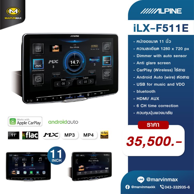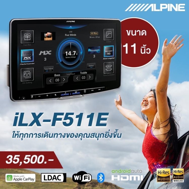จอเครื่องเสียง Floating ขนาดใหญ่ 11 นิ้ว ดีไซน์ลอยตัว ปรับมุมได้ อัดแน่นด้วยฟีเจอร์พรีเมียม รองรับ Apple CarPlay / Android Auto ทั้งแบบมีสายและไร้สาย พร้อม Hi-Res Audio ให้เสียงคมชัดระดับสตูดิโอ เชื่อมต่อครบทั้ง Bluetooth, USB, HDMI และระบบปรับแต่งเสียงขั้นสูง เหมาะสำหรับผู้ที่ต้องการจอใหญ่เต็มตาและเสียงทรงพลัง