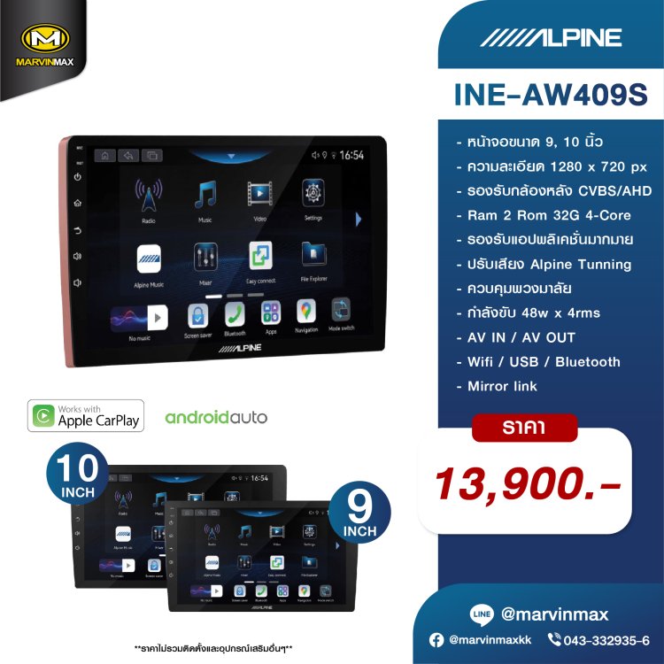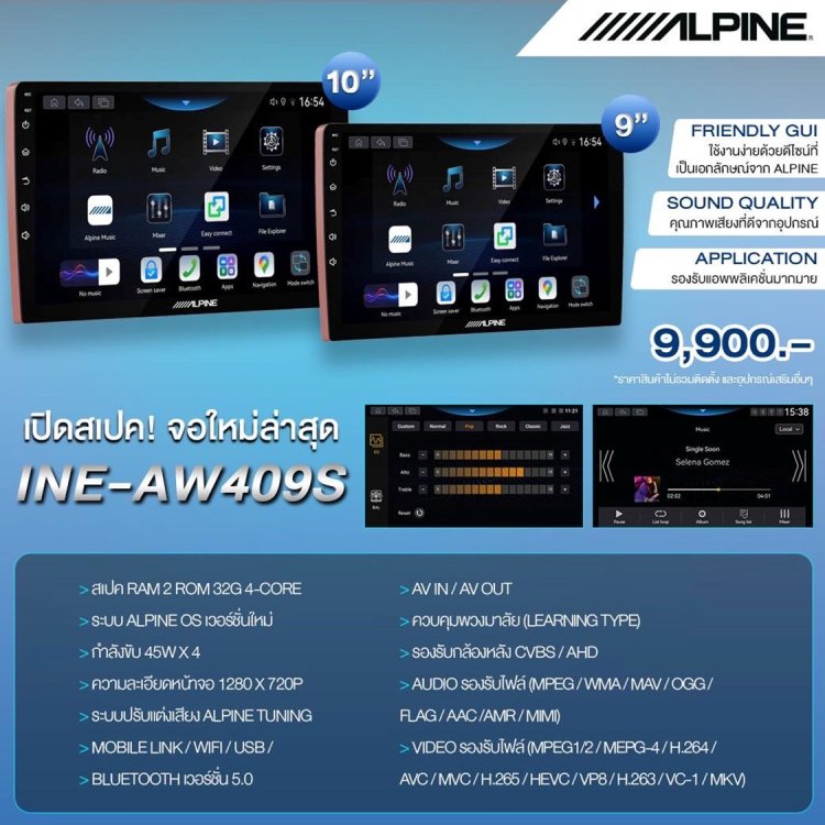 ระบบมัลติมีเดียติดรถยนต์ Alpine INE-AW409S หน้าจอสัมผัสขนาด 7 นิ้ว รองรับวิทยุ, USB, Bluetooth และการเชื่อมต่อมือถือ ให้ความบันเทิงครบครันในทุกการเดินทาง ราคา 9,900 บาท