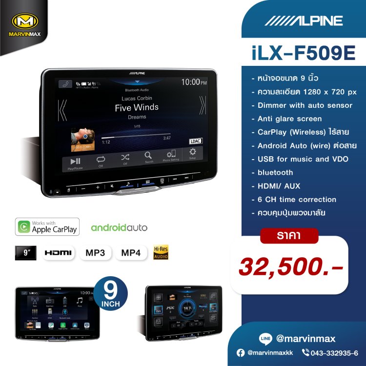 จอเครื่องเสียง Floating ขนาด 9 นิ้ว ดีไซน์ลอยตัว ปรับมุมได้ อัดแน่นด้วยฟีเจอร์ระดับพรีเมียม รองรับ Apple CarPlay / Android Auto ทั้งแบบมีสายและไร้สาย พร้อม Hi-Res Audio ให้เสียงคมชัดสมจริง เชื่อมต่อครบทั้ง Bluetooth, USB, HDMI และระบบปรับแต่งเสียงขั้นสูง เหมาะสำหรับผู้ที่ต้องการจอใหญ่ คมชัด และเสียงคุณภาพสูง