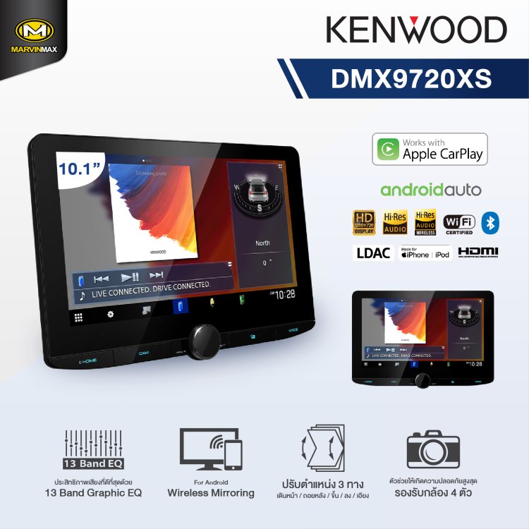 เครื่องรับมัลติมีเดียแบบดิจิทัลพร้อมจอแสดงผล HD แบบลอยตัวขนาด 10.1 นิ้ว