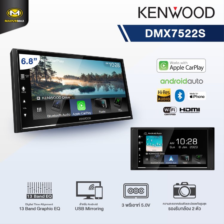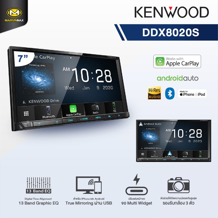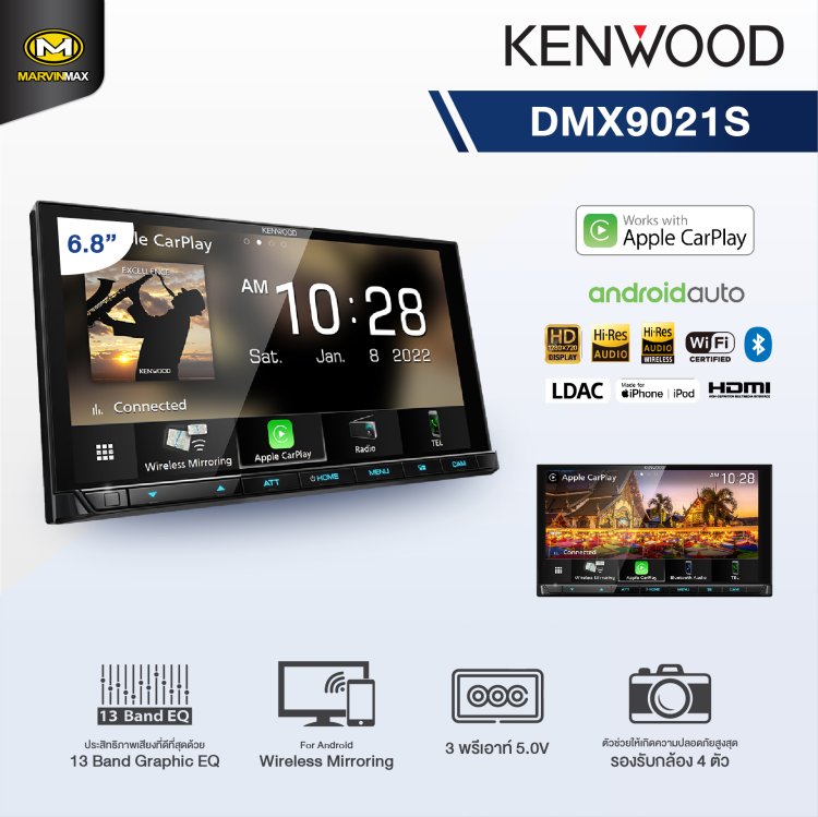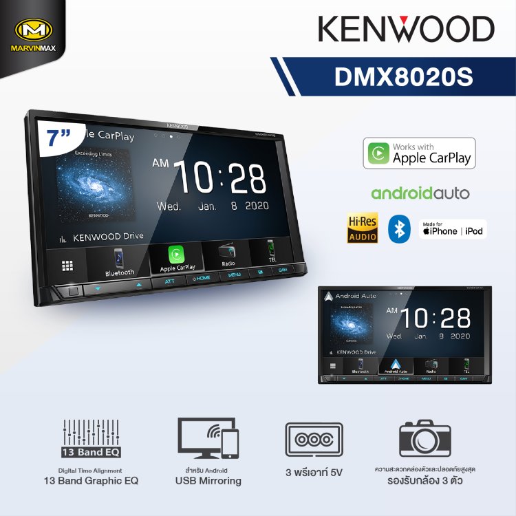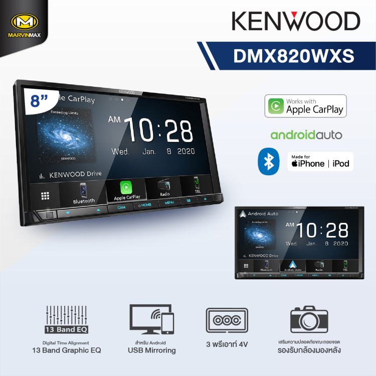 อุปกรณ์รับสัญญาณดิจิตอลมีเดียพร้อมจอภาพ WVGA ขนาด 8.0"