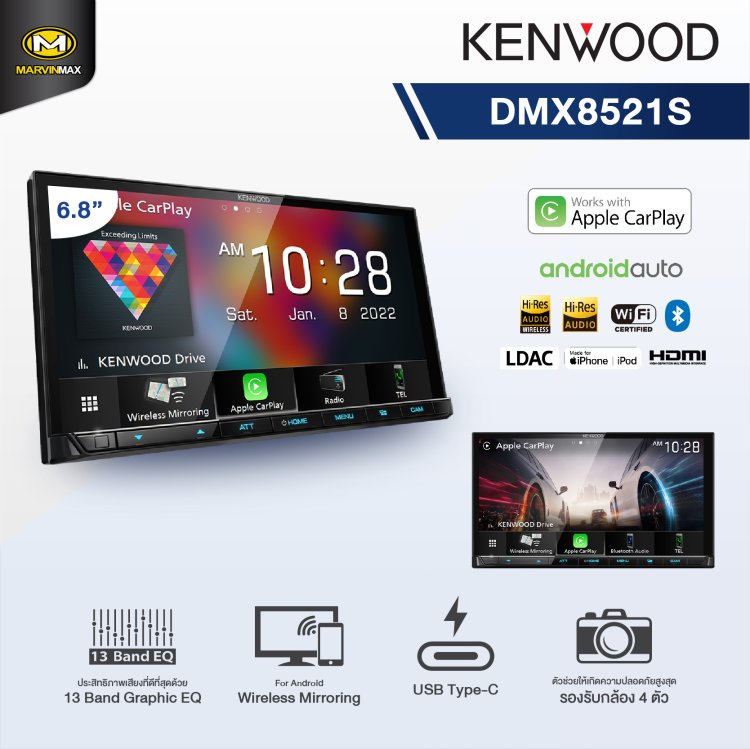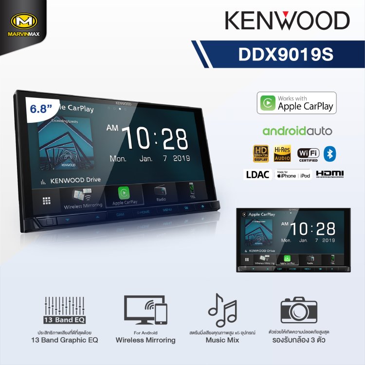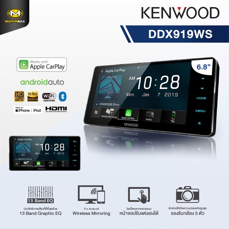 ตัวรับสัญญาณ AV หน้าจอขนาด 6.8 นิ้ว