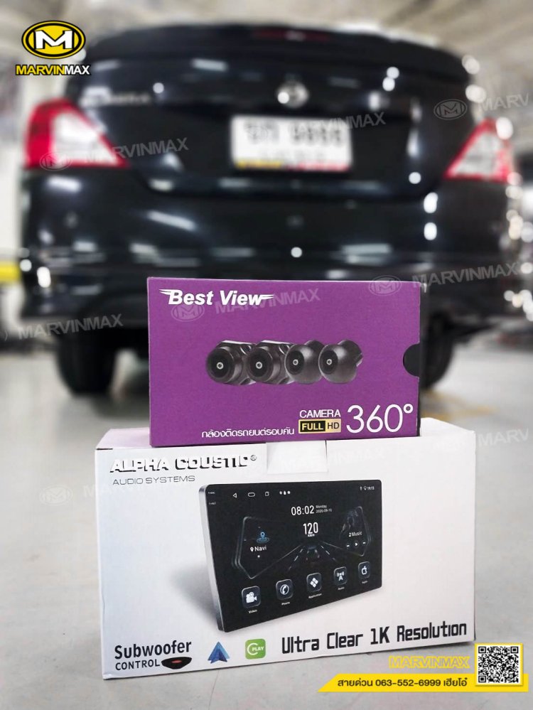 จอติดรถยนต์ ALPHA COUSTIC พร้อมกล้องรอบคัน NISSAN ALMERA