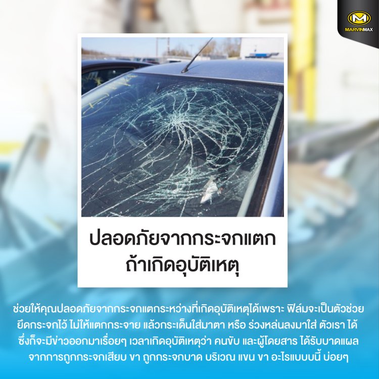 ช่วยให้คุณปลอดภัยจากกระจกแตกระหว่างที่เกิดอุบัติเหตุได้เพราะ ฟิล์มจะเป็นตัวช่วยยึดกระจกไว้ ไม่ให้แตกกระจาย แล้วกระเด็นใส่มาตา หรือ ร่วงหล่นลงมาใส่ ตัวเรา ได้ ซึ่งก็จะมีข่าวออกมาเรื่อยๆ เวลาเกิดอุบัติเหตุว่า คนขับ และผู้โดยสาร ได้รับบาดแผลจากการถูกกระจกเสียบ ขา ถูกกระจกบาด บริเวณ แขน ขา อะไรแบบบนี้ บ่อยๆ