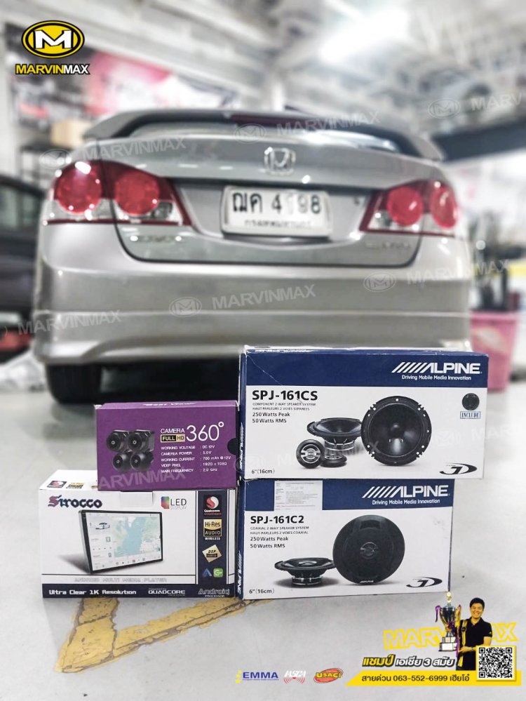 เครื่องเสียงติดรถยนต์ ลำโพงแยกชิ้น Alpine SPJ-161CS ลำโพงแกนร่วม SPJ-161C2 จอติดรถยนต์ Alpha Coustic พร้อมกล้องรอบคัน _HONDA CIVIC