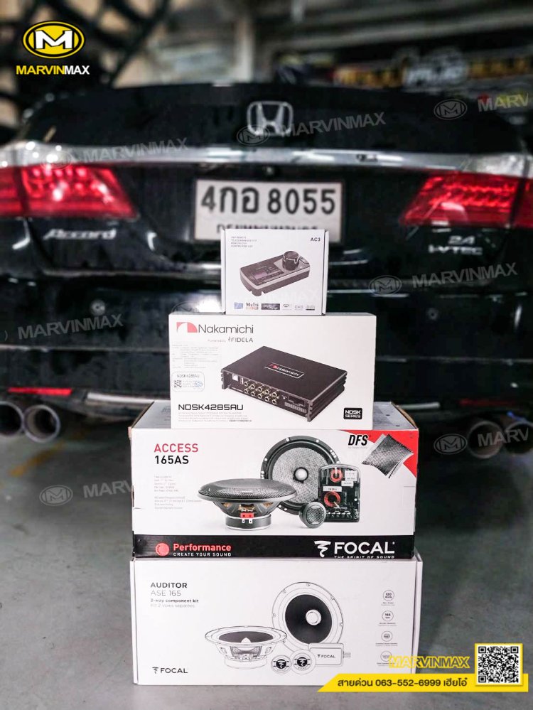 เครื่องเสียงติดรถยนต์ คู่หน้า focalAs165 คู่หลัง Ase165 Dsp nakamichi 4285 แผ่นแดมป์ Mercury _Honda Accord