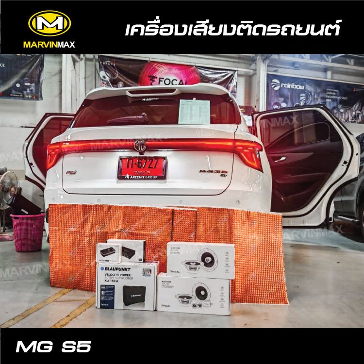Mg s5 ติดตั้ง ลำโพงคู่หน้าแยกชิ้น FOCAL ASE 165 ลำโพงคู่หลังแกนร่วม FOCAL ACX 165 DSP NAKAMICHI NDS 4285AU SUB BOX BLAUPUNKT XLF155A แผ่น Damp MERCURY GOLD ชุดสายทองแดงแท้ OFC Audison