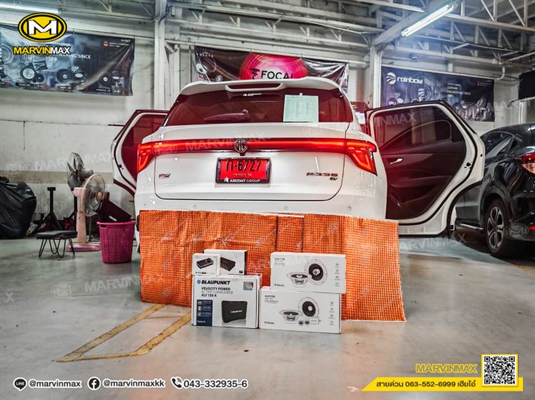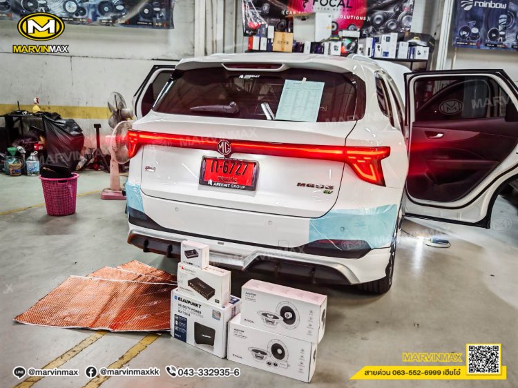 Mg s5 ติดตั้ง ลำโพงคู่หน้าแยกชิ้น FOCAL ASE 165 ลำโพงคู่หลังแกนร่วม FOCAL ACX 165 DSP NAKAMICHI NDS 4285AU SUB BOX BLAUPUNKT XLF155A แผ่น Damp MERCURY GOLD ชุดสายทองแดงแท้ OFC Audison