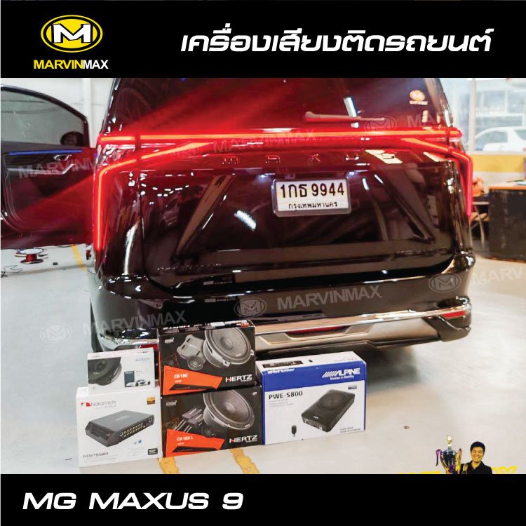 MG Maxus 9 ติดตั้ง DSP Nakamichi NDST550A ลำโพงแยกชิ้น 6” Hertz CK 165L ลำโพงแยกชิ้น 5” Hertz CK 130 ลำโพงแกนร่วม 4” Audison APX 4 Sub Box Alpine S800 แผ่นแดมป์ Mercury Gold