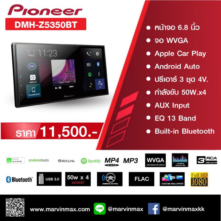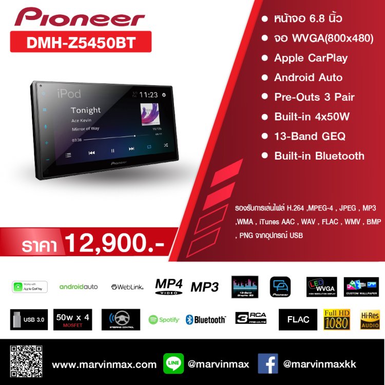 - 4x50วัตต์ เชื่อมต่อบลูทูธโทรศัพท์ได้