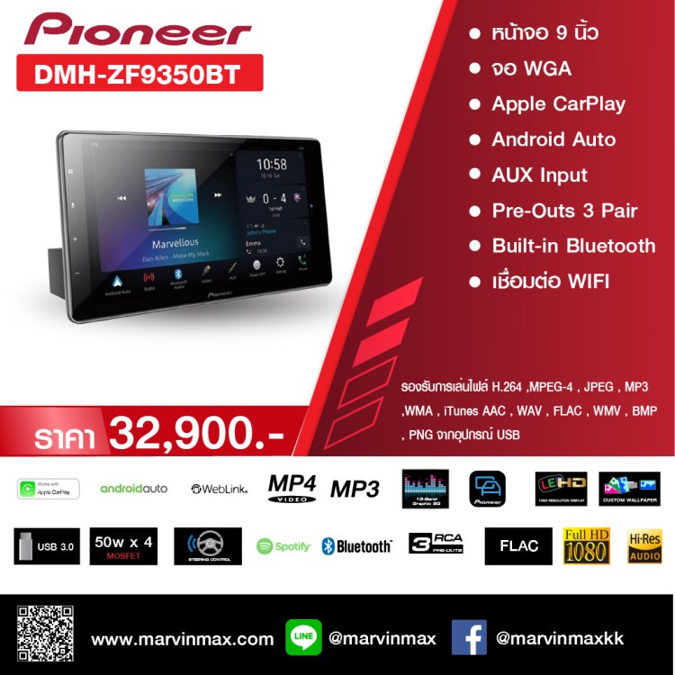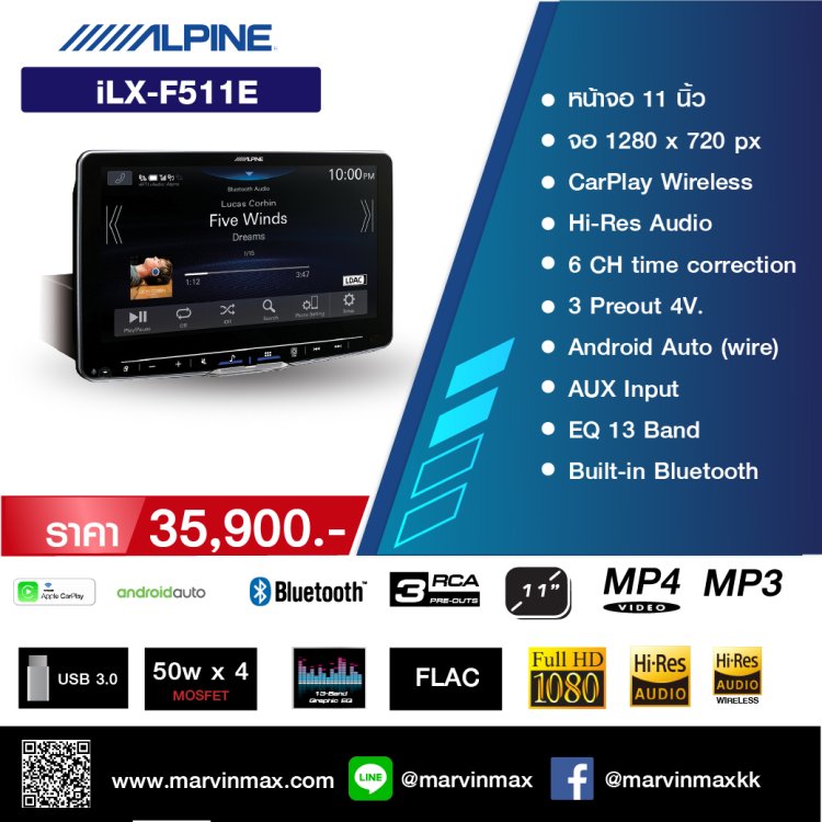 - รองรับไฟล์ FLAC ให้คุณภาพเสียงแบบไม่ถูกบีบอัด