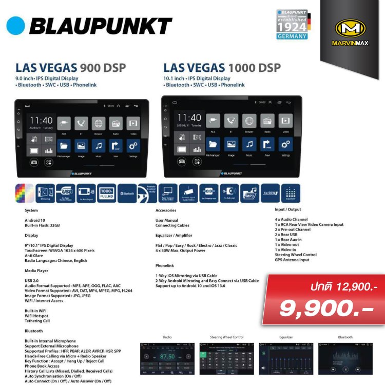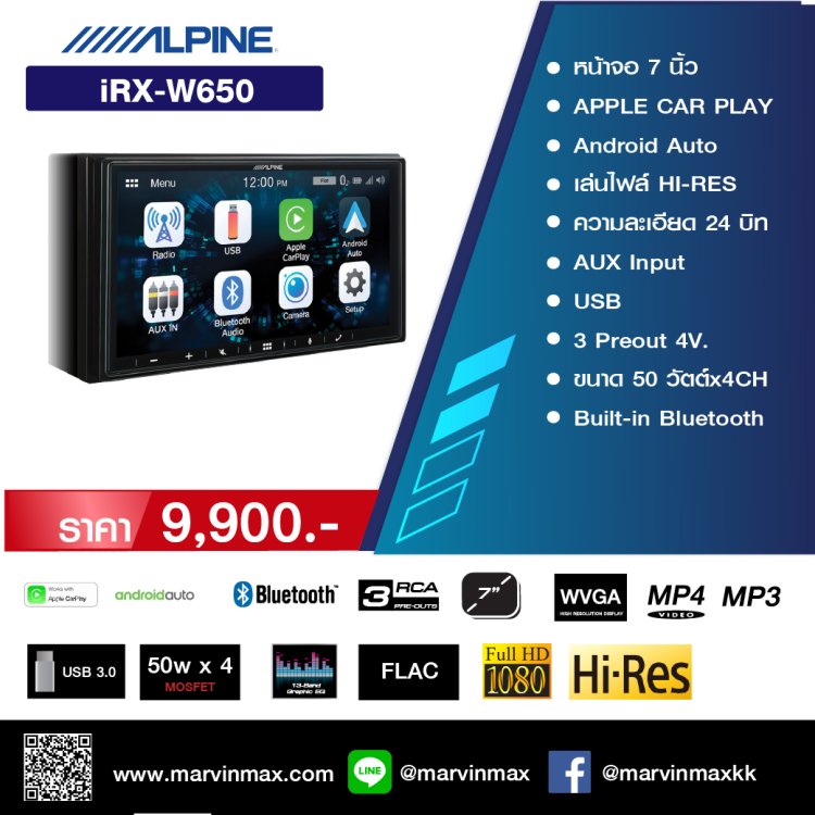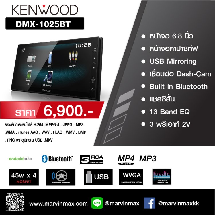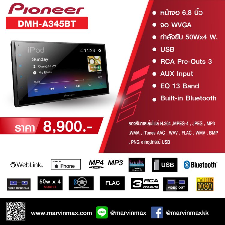 - รองรับ USB BLUETOOTH และ AUX IN  FM AM