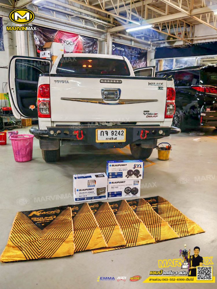 Toyota Vigo champ ติดตั้งเครื่องเสียง ลำโพงแยกชิ้น Blaupunkt BGx3652C ลำโพงแกนร่วม Blaupunkt BGx5654 ซับ Blaupunkt Xlf 150A แดมป์ Knack