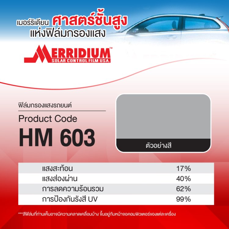 ฟิลม์กรองแสงติดรถยนต์จากอเมริกา ฟิล์มกรองแสงติดรถยนต์ ‘เมอร์ริเดียม’