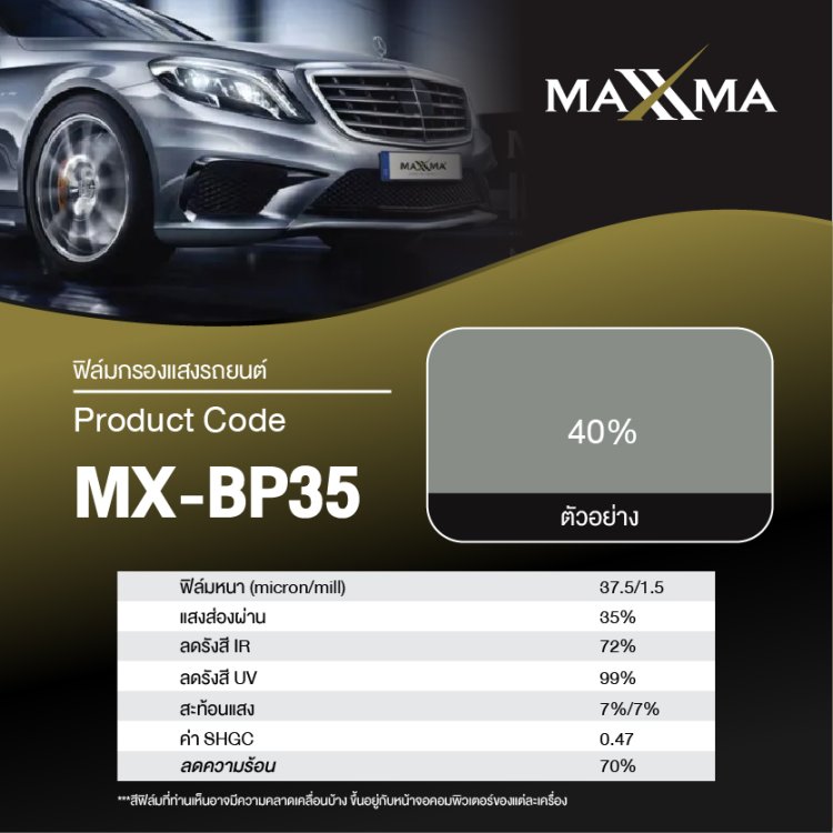ฟิล์มกรองแสง MAXXMA ทุกรุ่นสามารถป้องกันรังสีอันตราย ทั้งรังสี UV และอินฟราเรด ช่วยลดความร้อนได้สูง จึงช่วยลดการทำงานของเครื่องปรับอากาศ ทั้งในรถยนต์และอาคาร ส่งผลให้ช่วยประหยัดน้ำมัน “ฟิล์มรถยนต์ประหยัดพลังงาน” จึงเป็นคำนิยามใหม่ที่เหมาะสมกับฟิล์ม MAXXMA ทุกรุ่น  เมื่อติดฟิล์ม MAXXMA จึงไม่เพียงเย็นสบายจากความร้อนที่ลดลง และปลอดภัยจากรังสีอันตรายเท่านั้น  แต่ยังมีส่วนช่วยเหลือสังคม ด้วยการประหยัดพลังงานให้แก่โลกใบนี้