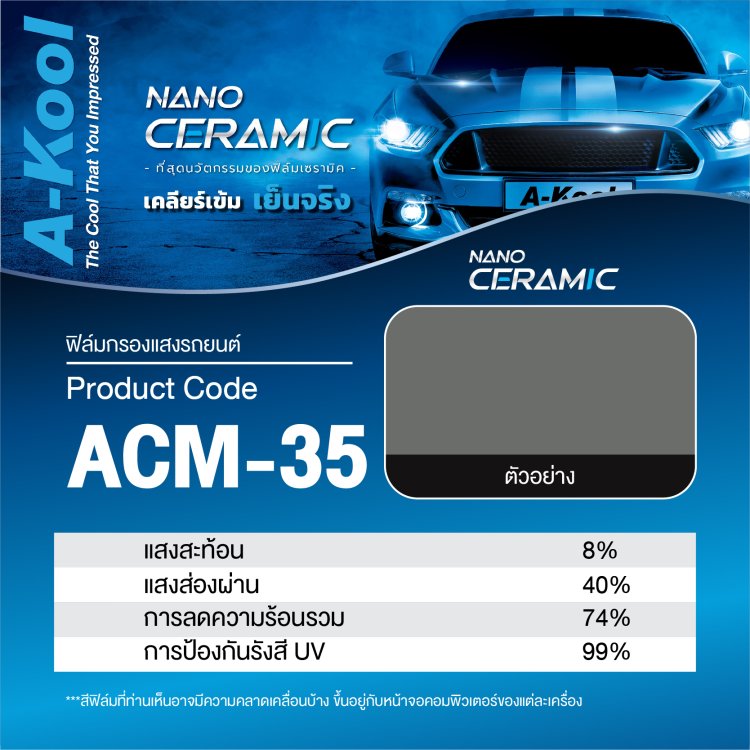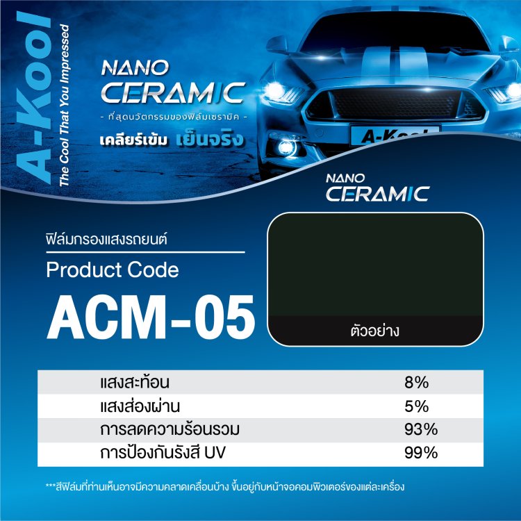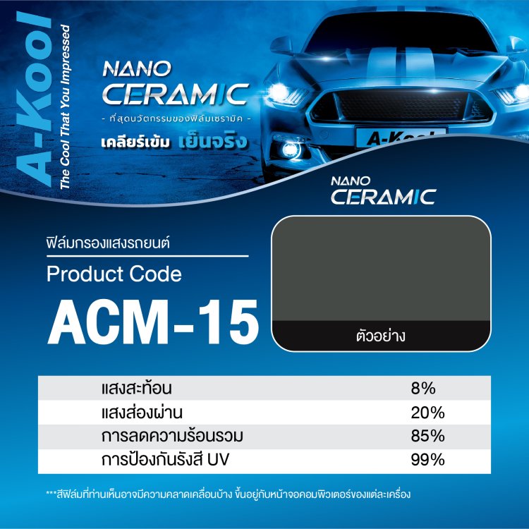 The Cool That You Impressed เคลียร์เข้ม เย็นจริง Nano Ceramic แท้ 100% มาตรฐานยุโรป Clear Vision วิสัยทัศน์ในการขับขี่ชัดเจน เคลียร์ใส เข้มจากภายนอก สว่างจากภายใน Clear Signal ซัดเจนทุกสัญญาณ GPS Easy Pass, RFID และสัญญาณมือถือ UV Cut ป้องกันรังสี UV ได้มากกว่า 99% IR Cut (Infrared) ได้มากกว่า 90% ไม่สะสมความร้อน เนื้อฟิล์มป้องกันรอยขีดข่วน รับประกันการใช้งาน 7 ปี