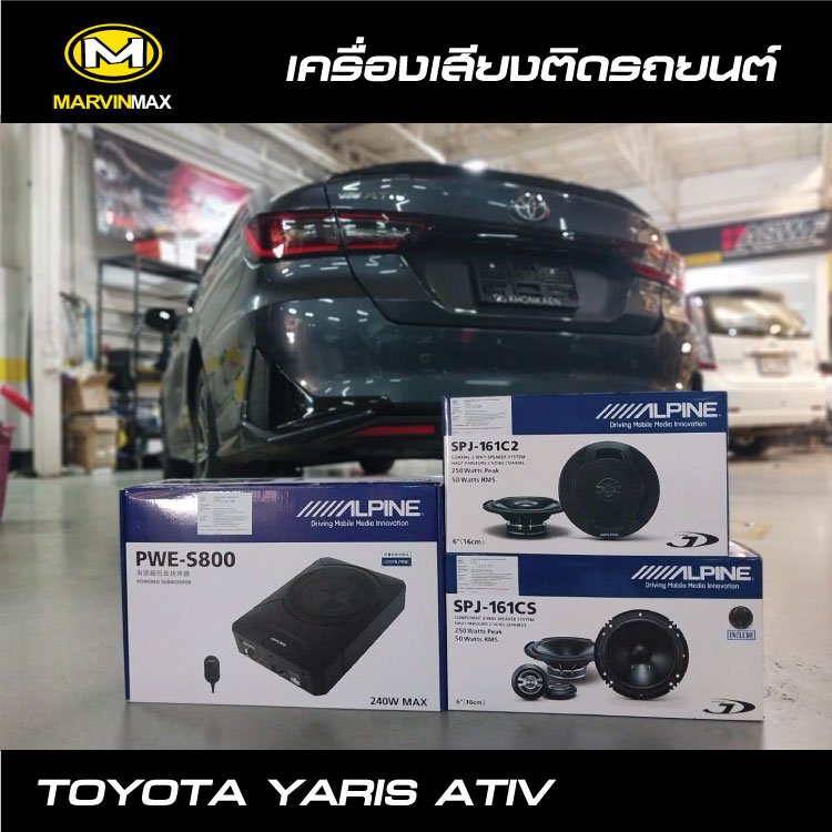 เครื่องเสียงติดรถยนต์ ลำโพง Alpine SPJ-161C2 ลำโพง Alpine SPJ-161CS ซับ Alpine PWE-S800 _Toyota yaris Ativ