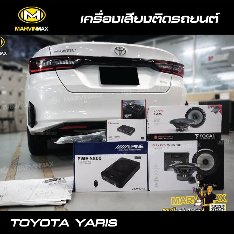 เครื่องเสียงติดรถยนต์ ลำโพง focal Flex Evo PS 165 fxe / ลำโพง Focal Access 165Ac / Dsp Nakamichi Ndsk4185U / Bass Box ยี่ห้อ Alpine pwe-s800 _TOYOTA YARIS ATIVE